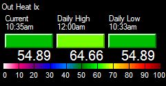 | High Heat Index | 64.7°F at 12:00am | ||